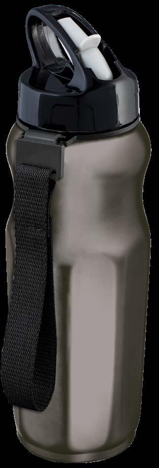 Cette bouteille de sport, fabriquée à partir d‘acier inoxydable recyclé, se distingue par son design attrayant, sa capacité généreuse et ses performances d‘isolation impressionnantes. La bouteille premium est disponible avec un revê-tement en poudre noir ou blanc sophistiqué. Les liquides restent chauds pendant jusqu‘à 6 heures ou froids pendant 41 heures. Grâce à la conception méticuleuse qui intègre un joint en silicone et un bouchon à vis, la bouteille est étanche et convient même pour les boissons gazeuses. Le couvercle est en plastique sans BPA, garantis-sant qu‘il est sans danger pour la santé. La boucle de transport pratique permet une por-tabilité facile. Son ouverture large facilite le rem-plissage, même avec des glaçons. Astuce N‘hé-sitez pas à mettre la bouteille au lave-vaisselle pour un nettoyage en profondeur.