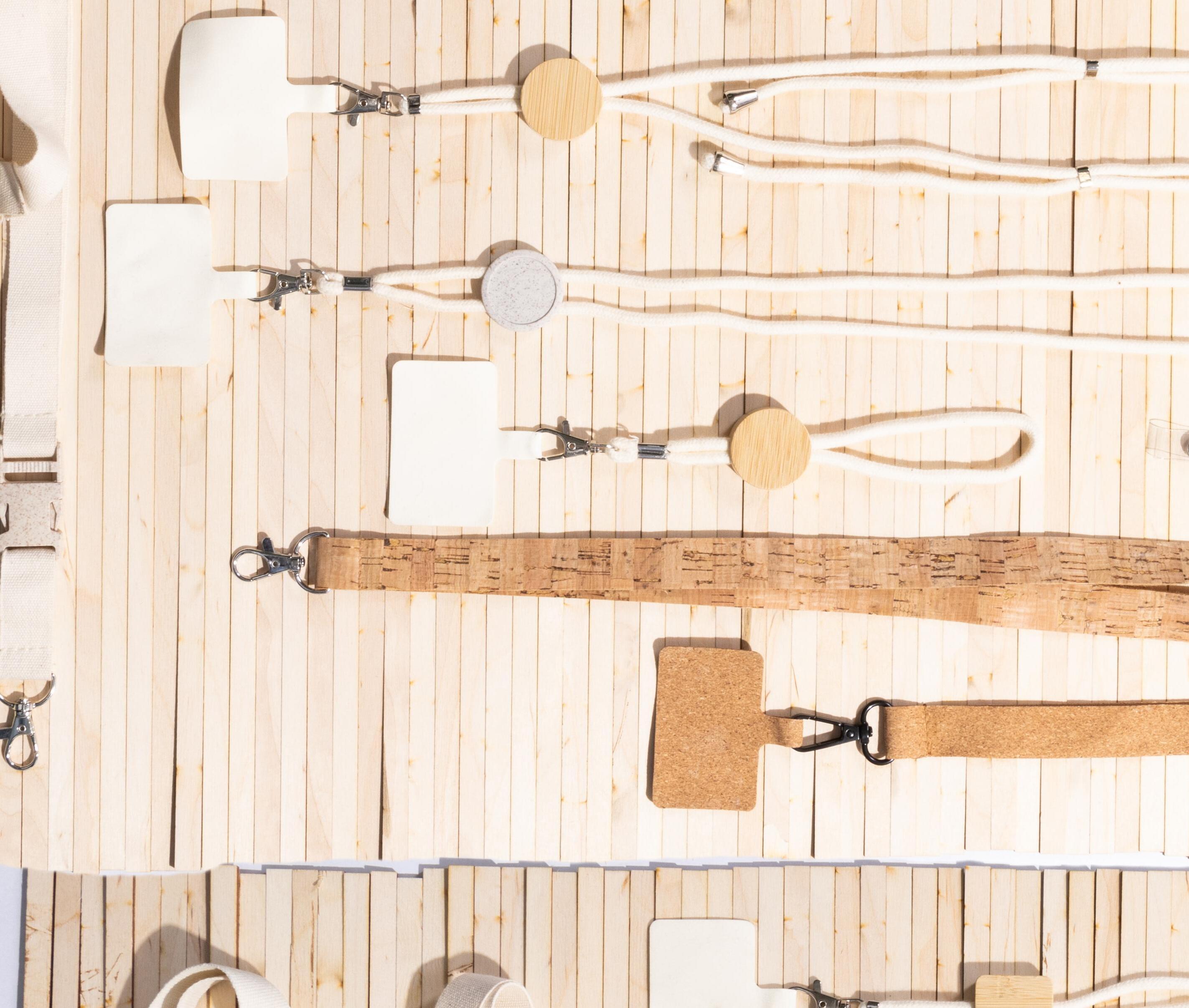 The promotional lanyards from the Eco Collection are made from recycled materials and natural resources such as cotton, bamboo, cork, and even paper. Their buckles are also produced from eco-friendly materials like straw or corn.