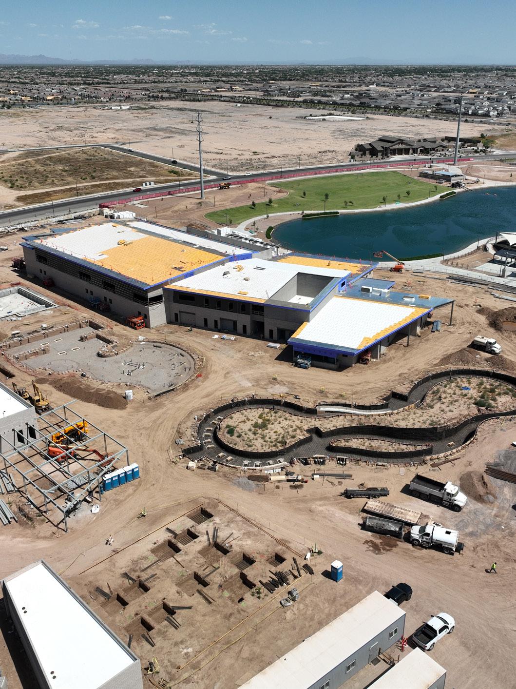 PROJECT DESCRIPTION: The new Queen Creek Recreation and Aquatic Center will include an indoor recreation center with various sport courts; basketball, volleyball, pickleball, fitness area, teen room, child watch and classrooms. The outdoor aquatic center will include a zero-depth entry play pool, competition and lap pool, lazy river and slides.