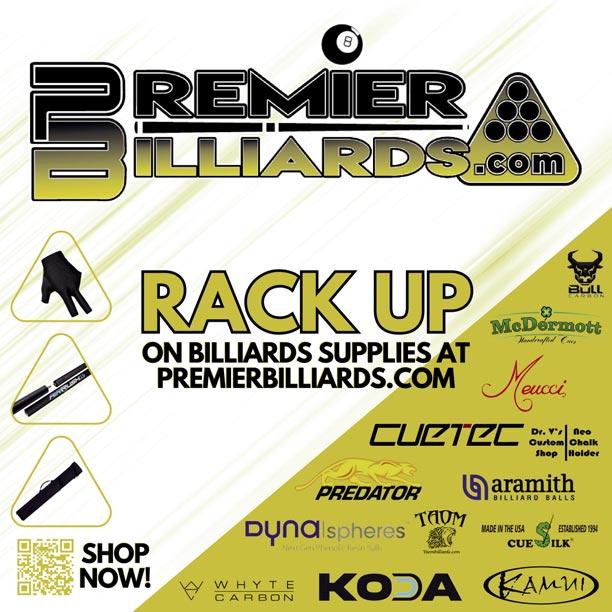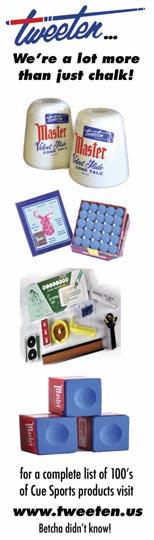 aforementioned 14.1, a Semi-Pro 9-Ball Championship limited to an amateur’s 650-and-under Fargo Rate, and the under 18 Boy’s and Girl’s Junior Championships. All but the 14.1 on Diamond’s tight 4 1/4” pro-cut pockets. The 14.1 tables were expanded to 4 1/2.”