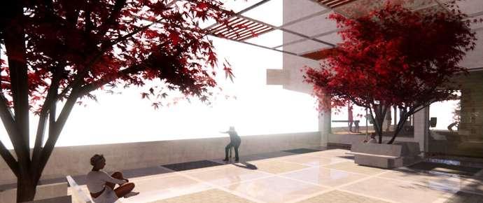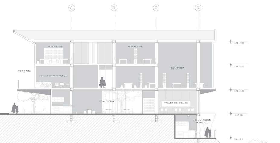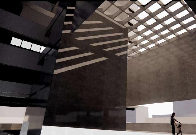 Se propone espacios públicos exteriores, con el objetivo de integrar la ciudad al proyecto, logrando que este proyecto tenga algo que brindar al peatón, no logrando intimidarlo, sino que tenga la sensación de que el proyecto te esté invitando a recorrer está obra arquitectónica.