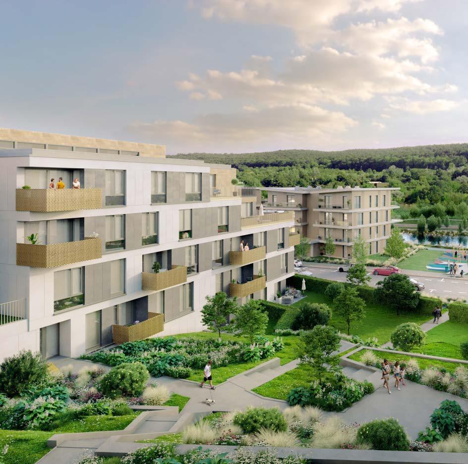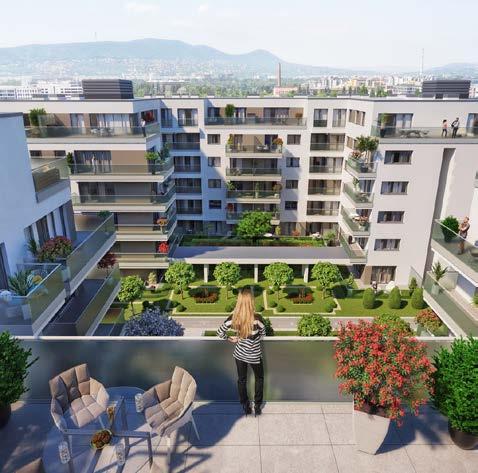 A komplexum négy épületből áll, melyek között hatalmas belső kert kap helyet.