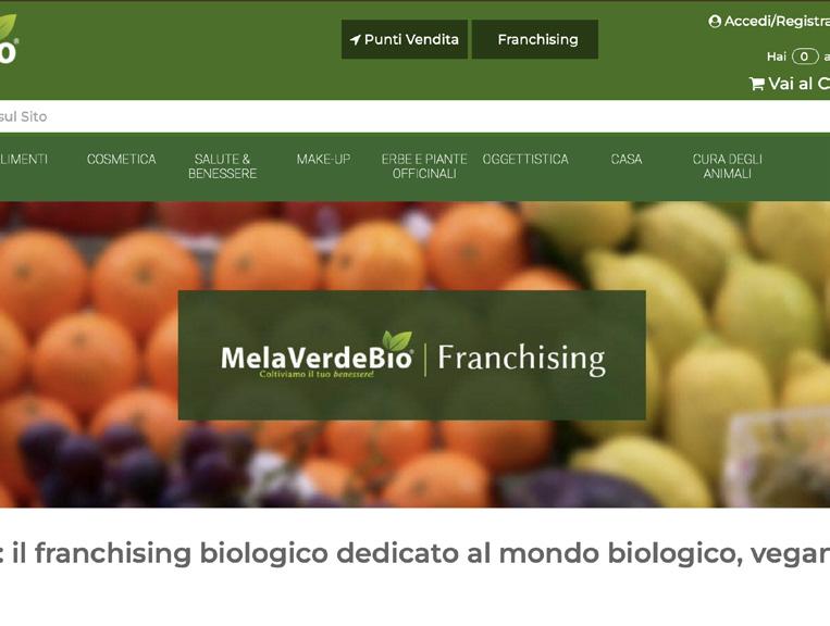 MelaVerdeBio è un franchising dedicato al mondo biologico, vegano e senza glutine. È promossa la sezione del sito dove è spiegato il format franchising del brand. Sono spiegate in maniera discorsiva tutte le informazioni utili. È inoltre presente la scheda tecnica dove si possono trovare riassunti i dati come: ubicazione ottimale, bacino di utenza, investimento totale e se è richiesta esperienza.
