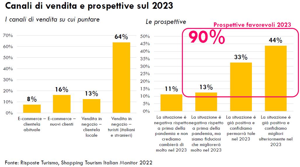 Segnali di ripresa per lo shopping tourism in Italia che, nel 2023, potrebbe superare la quota dei 2 milioni di turisti che viaggiano con motivazione prevalente shopping stimata prima della pandemia. È la proiezione di Risposte Turismo, società di ricerca e consulenza a servizio della macro-industria turistica, presentata in occasione della tappa conclusiva del tour itinerante 2022 di Shopping Tourism – il forum italiano, l’unico appuntamento in Italia dedicato agli operatori del turismo e del retail ideato dalla stessa Risposte Turismo e organizzato quest’anno in partnership con il Sistema Confcommercio e, per la tappa di Bologna,