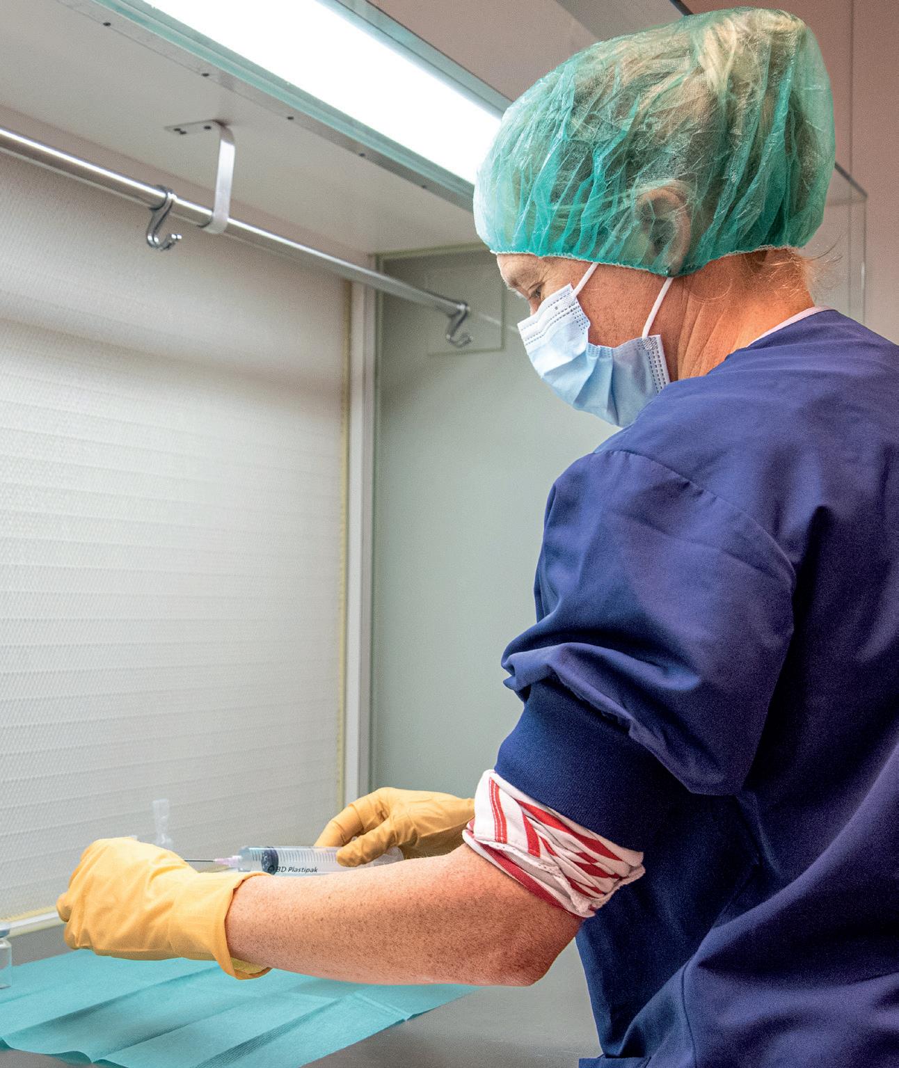 Lorsque le patient se présente à l’hôpital de jour interniste, nous créons une ouverture par voie intraveineuse et expliquons comment le test se déroulera. Par-dessus tout, nous rassurons le patient. Tout se passe dans des conditions sûres et les médicaments d’urgence sont à portée de main.