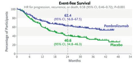 3. O’Brien M, et al. Pembrolizumab versus placebo as adjuvant therapy for completely resected stage IB-IIIA non-small-cell lung cancer (PEARLS/KEYNOTE-091): an interim analysis of a randomised, triple-blind, phase 3 trial. Lancet Oncol. 2022 Oct;23(10):1274-1286