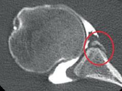 Fig. 7: Arthro-CT rechterschouder met Bony Bankart (rode circkel)
