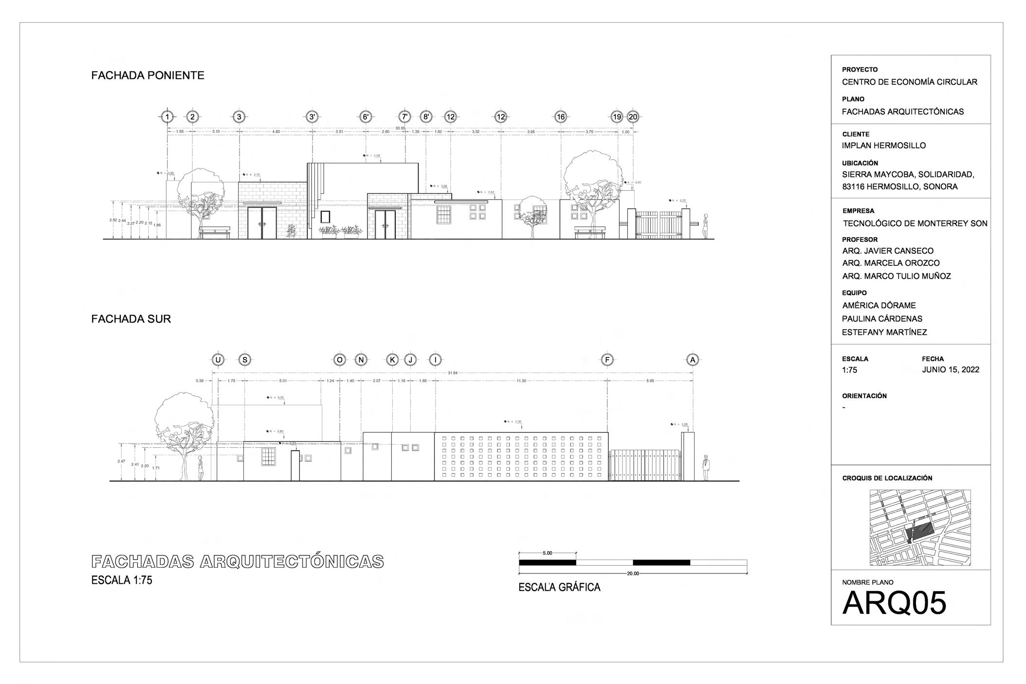 This project entails the architectural and constructive design of a Circular Economy Center located in Hermosillo, Sonora. This Center will be the headquarters of the Biciclando project; a government-implemented strategy for reactivating the economy of women who lost their jobs during the COVID-19 pandemic and are the main source of income for their families, while also promoting green jobs, sustainability and environmental responsibility in the Hermosillo community.