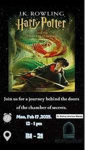 On 3 March 2025, Bashayer Alatiah and Haya Godan presented chapters 13-17. Where they meet Mopping Martha and uncover the diary of the chamber of secrets. Harry discovers Tom Riddle's bewitched diary, a relic of the past that unveils a haunting memory-Riddle's accusation of Hagrid as the one who unleashed the monster of the Chamber. The attacks at Hogwarts escalate, culminating in the petrification of Hermione and the shocking death of a Hogwarts student, their body discovered near the Chamber's entrance The Ministry seizes the moment to arrest Hagrid and suspend Dumbledore, leaving the school vulnerable Following Hagrid's cryptic advice, Harry and Ron venture into the Forbidden Forest, where the ancient spider Aragog confirms Hagrid's innocence but refuses to name the true monster As a horde of his ravenous offspring closes in, the boys escape death by the enchanted Weasley car, carrying with them a chilling revelation of the horror that lurks beneath Hogwarts