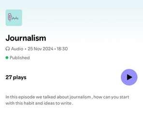 In continuation of the Podcast episodes series which was initiated in the academic year 2022, conversation club released one more episodes on 10th of November 2024, the topic was Journalism With an aim of providing a convenient platform to improve conversational skills and express their opinion, to establish a connection with the world around them, and to instill confidence amongthestudents.Itisanexcellentwayto developconversationskillsinafunfilledway. The student participants took active part in discussingandsharingtheiropinion.Podcast series was hosted by Joud Ajlan..and Fay Dagfaq . Media related work was done by Lubna Ahmad Altufayl. Participants were Dalal Ali Dossari,Noura Ibrahim al Mohaini, and Ateer Saed Al Tamimi. Overall supervisedbyDr.SameenaBanu.