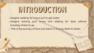 A Long Walk to Water is a novel based on the true story of Salva Dut, a boy from Sudan, and also follows a fictional girl named Nya, living in the same country years later. The story is set in two different time periods—1985 and 2008—and shows how their lives, though different, are connected by the same struggle: the need for clean water.