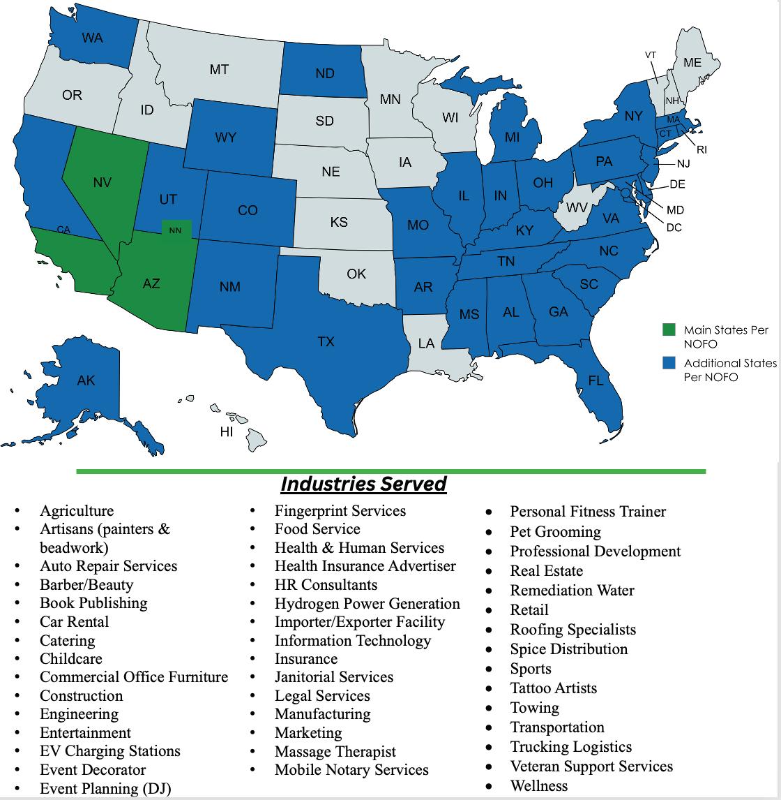 Our innate ability to conduct dynamic, nationwide outreach resulted in us engaging with more than 700 business owners and entrepreneurs. During our first grant cycle, we worked with clients across 25 states, as well as in different Tribal communities.