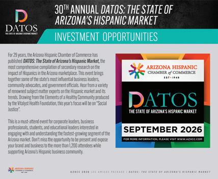 To promote the success of Hispanic-owned businesses by facilitating business relationships, economic development and sharing of knowledge for the benefit of the State of Arizona and the growth and success of the members of our Chamber.