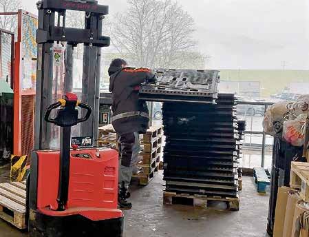 Mattia Keller (a destra), direttore di Migros Ticino, insieme a MariaLuisa Polli, direttrice della Fondazione Diamante e Dario a Marca, capo vendita di Coop Ticino; in basso, un utente FD impegnato nella logistica di Migros Ticino.