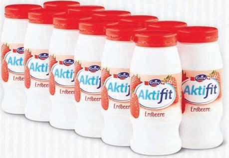 7.60 invece di 9.50 Yogurt da bere Aktifit Emmi fragola, pesca e frutta esotica, 12 x 65 ml, (100 ml = 0.97)