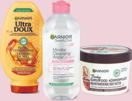 Tutto l'assortimento Garnier (prodotti solari, prodotti per la cura delle mani, deodoranti, confezioni da viaggio e multiple esclusi), per es. Micellar Cleansing Water All in 1, 400 ml, 5.96 invece di 7.95, (100