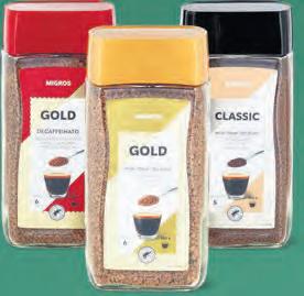 Caffè istantanei Migros disponibili in diverse varietà, per es. Gold dolce, 200 g, 4.90, (100 g = 2.45)