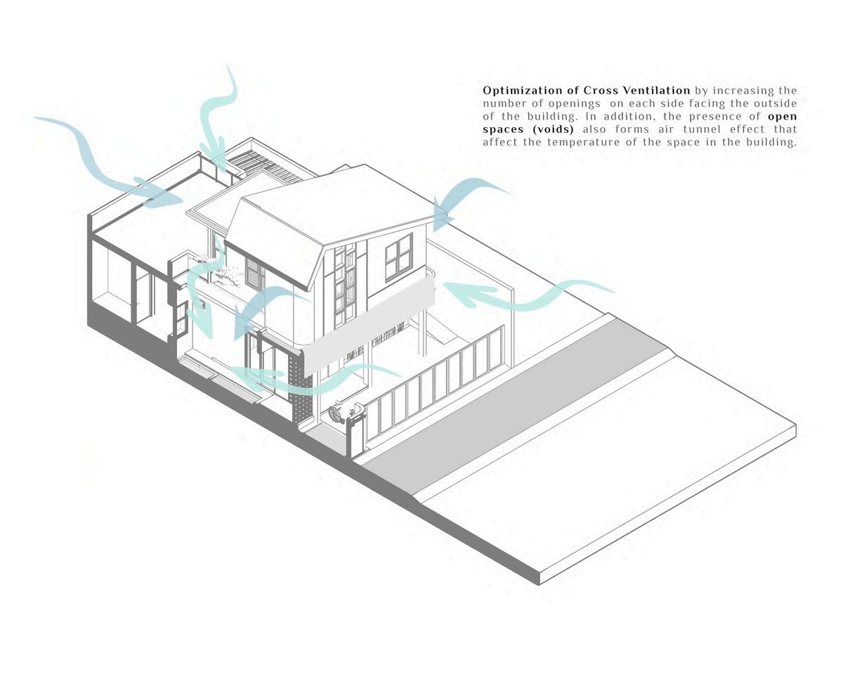 Optimization of Natural Lihting and Cross Ventilation by increasing the number of openings (Window) on each side facing the outside of buiding.