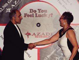 David Neishabori of AZADI Fine Rugs invites Jewell Blair, Allied ASID to try her luck.