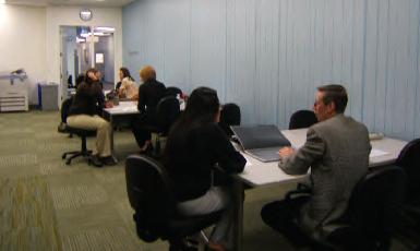 Students participating in practice interviews.