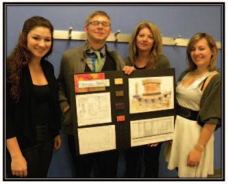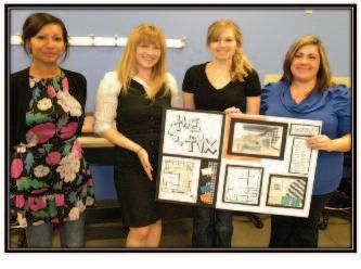place win for the IIDA Couture event Interior design student, Mar ni Nill for med her team with fellow interior design students Paulette Kim and Paula Savino. Trisha Adams and Maybelline Ar mistead from the Fashion Merchandising and Design program