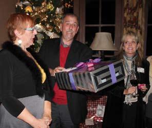 LeFt: Cindy Lewton, asId; Guy paul, Ip; and Gretchen palmer, allied asId; hand out raffle items at the holiday party