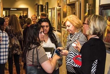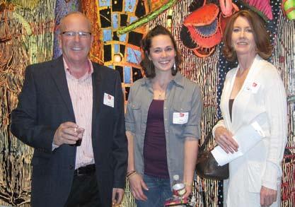 Karl Gustafson, Industry Partner Representative of Kitchen and Bath Idea Center, Erin Lindstrom, Student ASID, and Paddy Rasmussen, guest, enjoy the art at Bentley Gallery