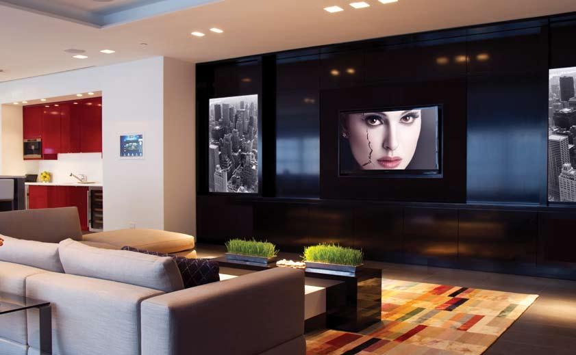 Taking the homeowners’ love of music and movies into consideration, a whole-house audio and video system can provide simplified access to movies, music, satellite television, and streaming sources such as Netflix, Hulu and YouTube® Photo by Crestron