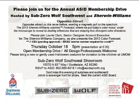 18 Chapter Meeting - colormix by laurie clark, Sherwin Williams 0.1 ceU; Essentially Southwest book signing by linda Barkman, editor; Halloween costume drive benefiting UMOM. Venue: Sub-Zero | Wolf Southwest