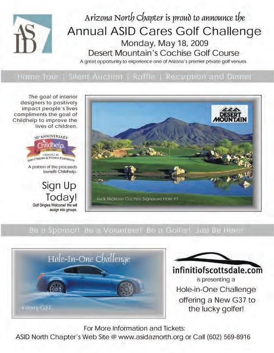 Desert Design magazine is published quarterly for the ASID Arizona North Chapter of the American Society of Interior Designers by DSA Publishing & Design, Inc. Editorial content and the Desert Design magazine are controlled and owned by the Arizona North Chapter of ASID. Reproduction of this publication in whole in part, in any form is strictly prohibited without the written permission of the Arizona North Chapter of ASID.