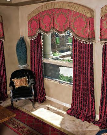 Designed by Alisha Newman of IBD Studio, Queen Creek, AZ; Fabricated by The Elegant Window –This operable drapery is interlined and blackout lined to help control the intense sunlight that comes through the window. The valance is also blackout lined.