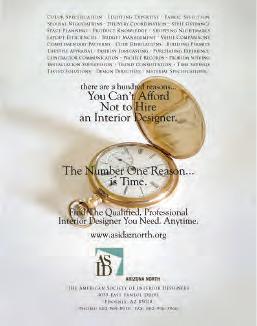 Simply, it must give its designers greater exposure with the residential and commercial consumers. To accomplish this objective, the Chapter has recently launched its new website with which gives designers many optional levels of exposure and is very user-friendly for the consumer. The effectiveness of any website is measured by the amount of viewers it receives. To increase traffic to the site, the Chapter will be promoting www.asidaznorth.org throughout the year and will be running ads similar to one shown here in LUXE magazine. The Chapter will also enhance the presence of the website on search engines. We invite you to visit www.asidaznorth.org, click on “Find a Designer” and see for yourself how this will benefit your business as well.