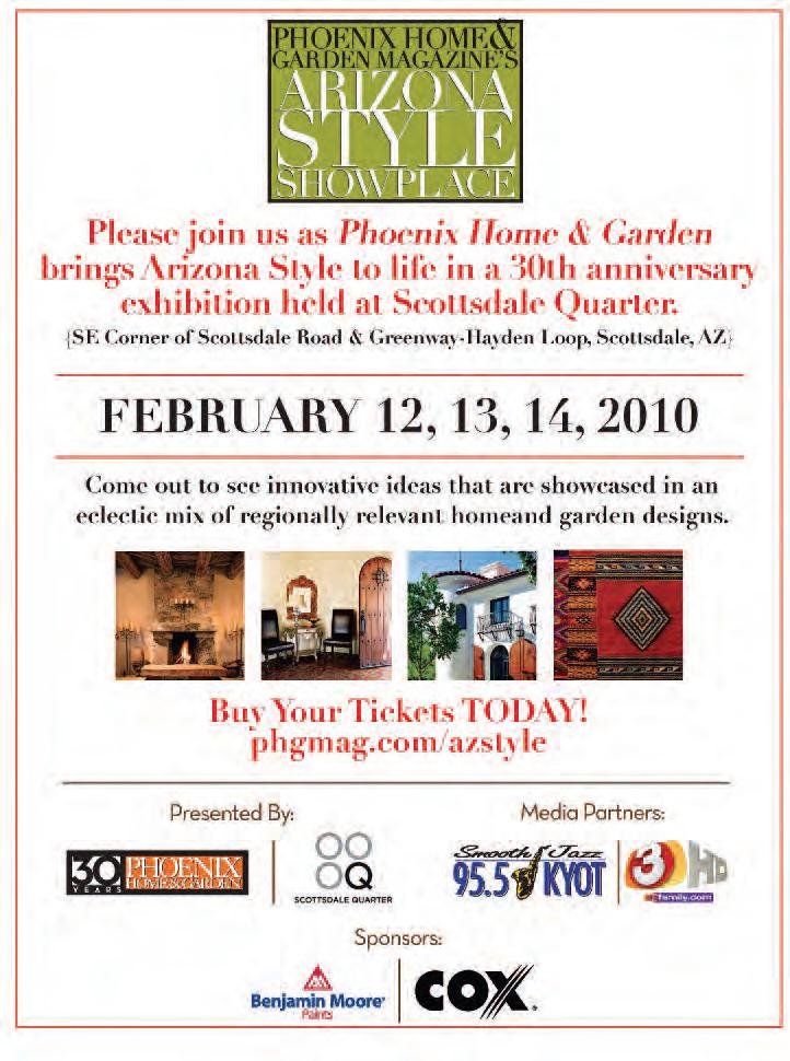 •ASID/PhoenixHome&Garden/Phoenix MagazineExhibit,ArizonaStyleShowplaceFebruary12–14,2010at ScottsdaleQuarter.