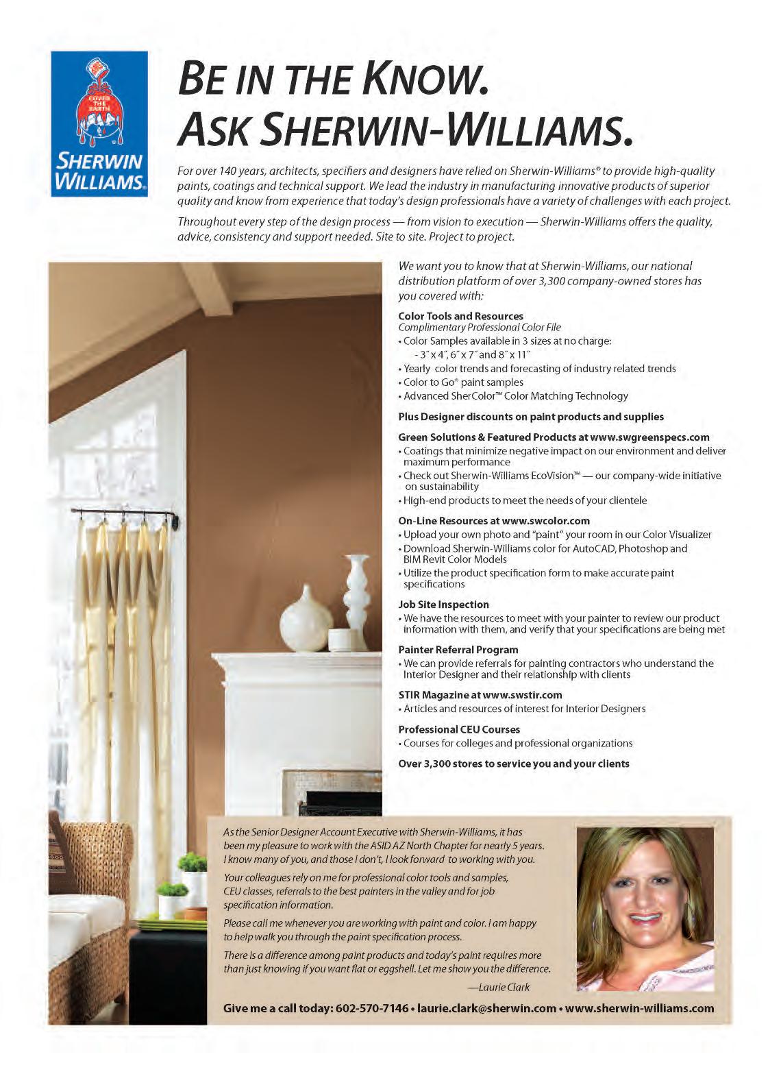 Lastly, I am very pleased and excited with the birth of our Nationally ASID branded “Creative Brief”. We, as the Board of Directors, listened to you and we heard that you are inundated with emails from many different companies and in some cases several from one source. We have streamlined that for you and produced the "Creative Brief." This is an electronic newsletter that is sent to everyone mid month and shares all of the past months information with you to include upcoming events and pertinent information. If you are not receiving it, please contact Pauline and make sure that we have your current and updated email information. We have received many positive comments regarding it, so I really want to make sure that no one is left out!