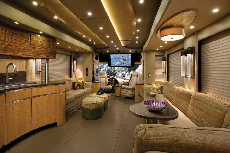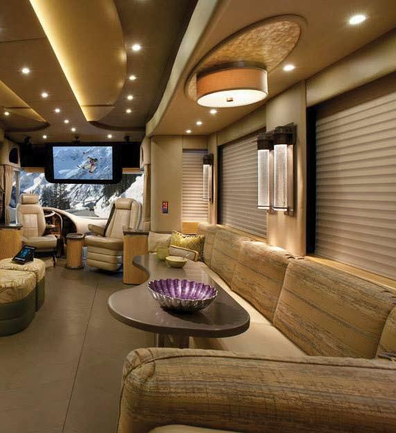 TODay mOre THaN eVer, mOTOrcOacHes aND rVs are NOT JusT VeHIcLes THaT GeT yOu FrOm point A to point B and provide a nice place to stay when you arrive at your destination. They’re seen as an extension of your home, and for many RVers, they’re a full-time home where families and friends spend time together and enjoy the adventures of the open road. So when it comes to designing motorcoaches, interior designers are continually looking at new and better ways to create livable spaces that are not only functional, but warm, welcoming, comfortable and beautiful.