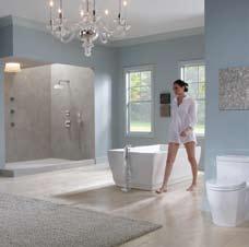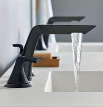 Encapsulated in the silhouette of the striking Sotria bath collection by Brizo® is a myriad of influences: airplanes, automobile tail fins and the optimism of mid-century America. Its triangular spout architecture is echoed across a range of configurations and complemented by signature features, including closed and channel spout lavatory faucets, a freestanding tub filler, and a multi-function showerhead with exclusive H2Okinetic® Technology.