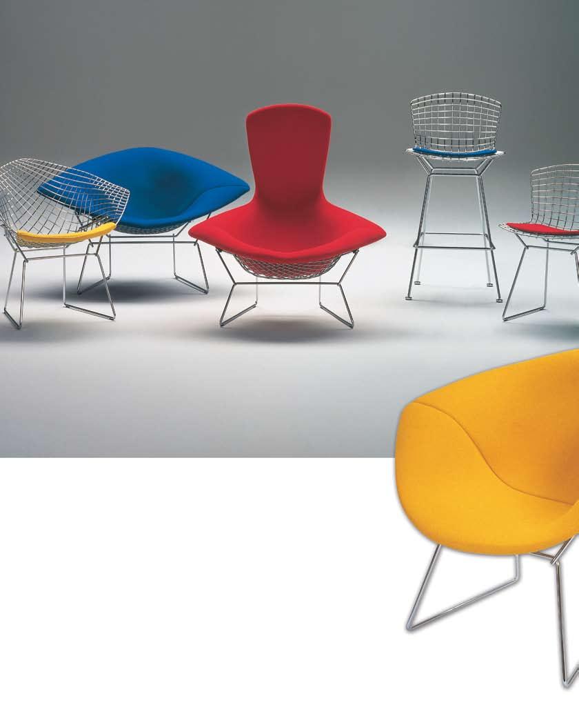 This prompted Mr. Bertoia to venture out and design furniture to his own “tune”. “My father was interested in music and based his design philosophy on this passion,” stated Ms. Bertoia. “You can see musical qualities in all of the chairs he designed in his life.” Mr. Bertoia loved the machine-made product and excelled at the production aspects of making his furniture appear “modern”. The slightest detail was considered in his chair production. Making the wire welds concealed, developing sensuous forms to fit the body and making each and every production piece as sensual as possible.