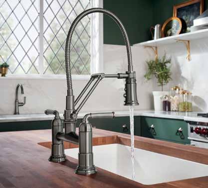 The Rook® Kitchen Collection by Brizo® exudes stately elegance at every turn. Its classic craftsman style is reminiscent of an early 20th century aesthetic, while contemporary, feminine touches elevate and modernize the look. Graceful curves complement precise angles, resulting in an exquisitely calculated balance. THE ROOK® KITCHEN COLLECTION visit brizo.com
