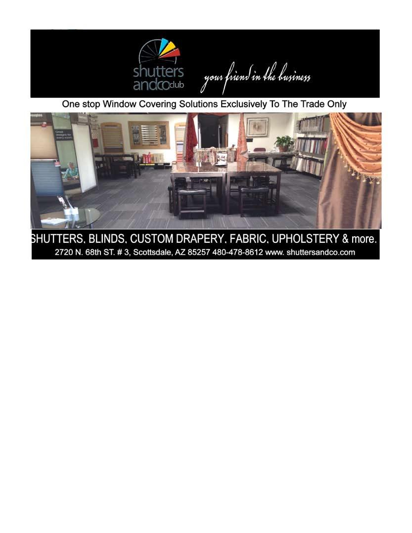 Desert Design Magazine is published quarterly by the Arizona North Chapter of the American Society of Interior Designers (ASID). Editorial content and the Desert Design Magazine title are controlled and owned by the Arizona North Chapter of ASID. Reproduction of this publication in whole or in part, in any form, is strictly prohibited without the written permission of the Arizona North Chapter of ASID. The Arizona North Chapter of ASID assumes no responsibility for the validity of advertisers’ claims or statements made in published items.
