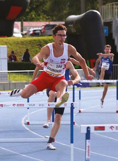 Natalii Kaczmarek nie trzeba chyba nikomu przedstawiać. Zawodniczka AZS AWF Wrocław to wielokrotna medalistka mistrzostw Polski i Europy, a od 2021 roku przede wszystkim mistrzyni olimpijska z Tokio w sztafecie mieszanej 4×400 metrów oraz wicemistrzyni olimpijska w kobiecej sztafecie 4×400 metrów. liwości, a po wielu latach przepracowanych treningów i adaptacji do nich przez mój organizm moje możliwości są coraz większe. Zazwyczaj jeździmy na zgrupowania dwa–trzy razy w roku za gra nicę, gdy w Polsce nie ma akurat do tego sprzyjających warunków. W kraju w ostatnim czasie coraz częściej trenujemy w Karpaczu, gdzie otrzymujemy duże wsparcie od burmistrza miasta. Powstał tam superstadion i bardzo dobre zaplecze treningowe. Jak wyglądały przygotowania w czasie pandemii? Czy ten czas wpłynął na twój plan treningowy? COVID-19 utrudniał trochę przygotowania do samych igrzysk. Zo stały one przełożone o rok, gdzie na mnie osobiście nie wpłynęło to jakoś negatywnie, ale na wielu nieco starszych zawodników już tak. Było im się ciężej przygotować, szczególnie że miały to być dla nich ostatnie igrzyska w życiu, a tutaj trzeba było pociągnąć tre ningi o rok dłużej. Myślę, że był to dość wyjątkowy czas nie tylko dla nas, wyczynowych zawodników. Dostęp do różnych obiektów był bardzo utrudniony, a na każdy wyjazd trzeba było wykonywać test. W czasie igrzysk olimpijskich mieliśmy robione testy prak tycznie codziennie, co było bardzo uciążliwe. Czy twoim zdaniem sport wyczynowy niesie za sobą wyrzeczenia? Niestety tak. Jesteśmy praktycznie cały czas na zgrupowaniach, przez co nie ma nas w domu z bliskimi. Ja na szczęście mam chłopaka, który również trenuje i jeździmy razem na zgrupowania, ale jednak są osoby, które zostawiają swoje drugie połówki w domu. Ja spędzam w domu 50–60 dni w roku i staram jak najwięcej pobyć wtedy z rodziną. Będąc wyczynowym zawodnikiem, nie mogę sobie pozwolić na wychodzenie na imprezy co weekend i inne atrakcje typowe dla osób w moim wie ku. Przestrzeganie diety, planu treningowego i regeneracja są bardzo ważne. Trenujemy zwykle dwa razy dziennie, a po treningu skupiamy się na odpoczynku, więc trudno znaleźć czas na inne przyjemności. Bywa ciężko, ale myślę, że zrekompensuję to sobie po karierze. Zdaję sobie sprawę, że nie potrwa ona wiecznie i powiedzmy, że sportowcy młodo kończą. Uważam, że te kilka lat wyrzeczeń jest tego warte i dlatego wybrałam taką drogę. Mateusz Lewandowski, Hanna Matula