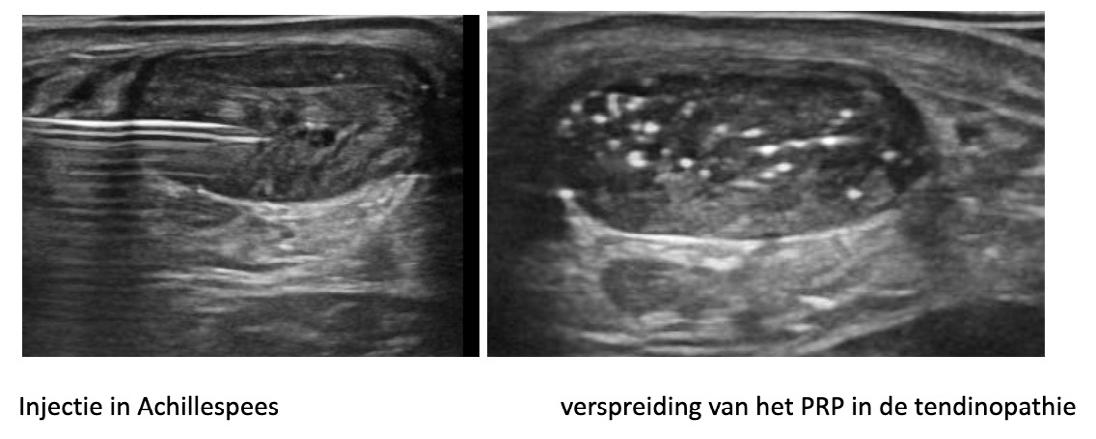 Studies tonen aan dat PRP de functionele activiteit verbetert en pijn vermindert. De injectie gebeurt onder echogeleide, strikt steriel, in de pees en eventueel in de peesschede. De hoeveelheid wordt aangepast aan de grootte van het letsel en zonder uitoefenen van overmatige druk.