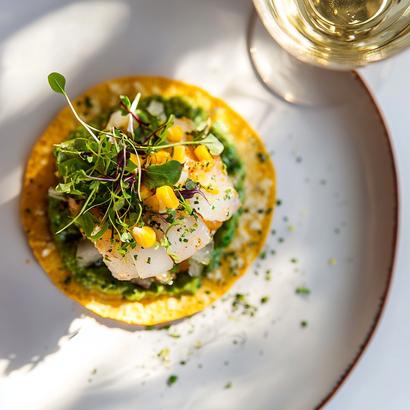 Tartare de dorade au citron vert, salsa verde de tomatillo, tostada croustillante