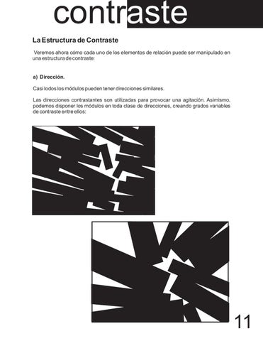 a) Dirección. Casi lodos los módulos pueden tener direcciones similares. Las direcciones contrastantes son utilizadas para provocar una agitación. Asimismo, podemos disponer los módulos en toda clase de direcciones, creando grados variables de contraste entre ellos: