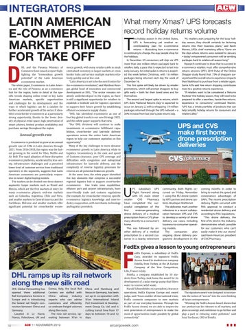 merce growth, with many retailers able to stock centralised inventory in larger markets or cross border hubs and service multiple markets relatively quickly and at low cost. “Latin America is set to be the next frontier for the e-commerce revolution,” said Matthias Heutger, global head of innovation and commercial development at DHL. “The sector remains relatively underdeveloped in the region, so there is still a significant opportunity for retailers to establish a foothold and for logistics operators to support their future growth by establishing efficient e-commerce supply chains. “DHL has identified e-commerce as one of four key global trends in our new Strategy 2025, and this white paper supports that view. “Our DHL divisions will continue to make investments in e-commerce fulfillment capabilities, cross-border and last-mile delivery operations across the entire Latin American region to help our customers capitalize on this opportunity.” Many of the key challenges to more dynamic e-commerce growth in Latin America relate to logistics. Inconsistency in the ease and speed of Customs clearance, poor GPS coverage and difficulties with congestion and suboptimal infrastructure for last-mile delivery, and the complexity of reverse logistics processes for returns are all potential brakes on growth. At the same time, the white paper identified five key elements that comprise a successful regional logistics hub to support cross-border e-commerce: free trade zone capabilities, efficient port and airport infrastructure, business-friendly trade and customs regulations (for example, for cross-border returns), specific e-commerce logistics knowledge and inter-industry cooperation, with merchants, technology and logistics providers.