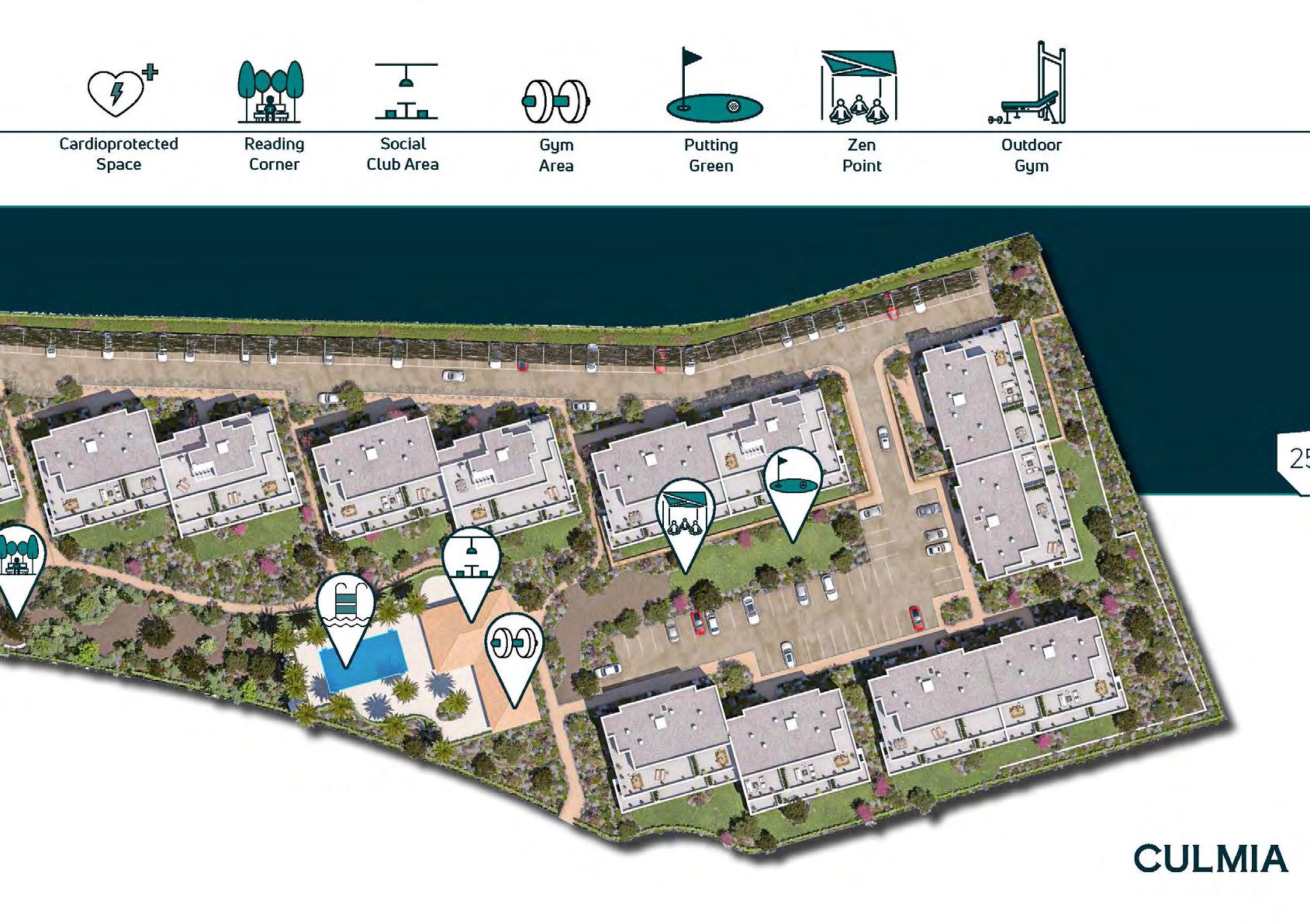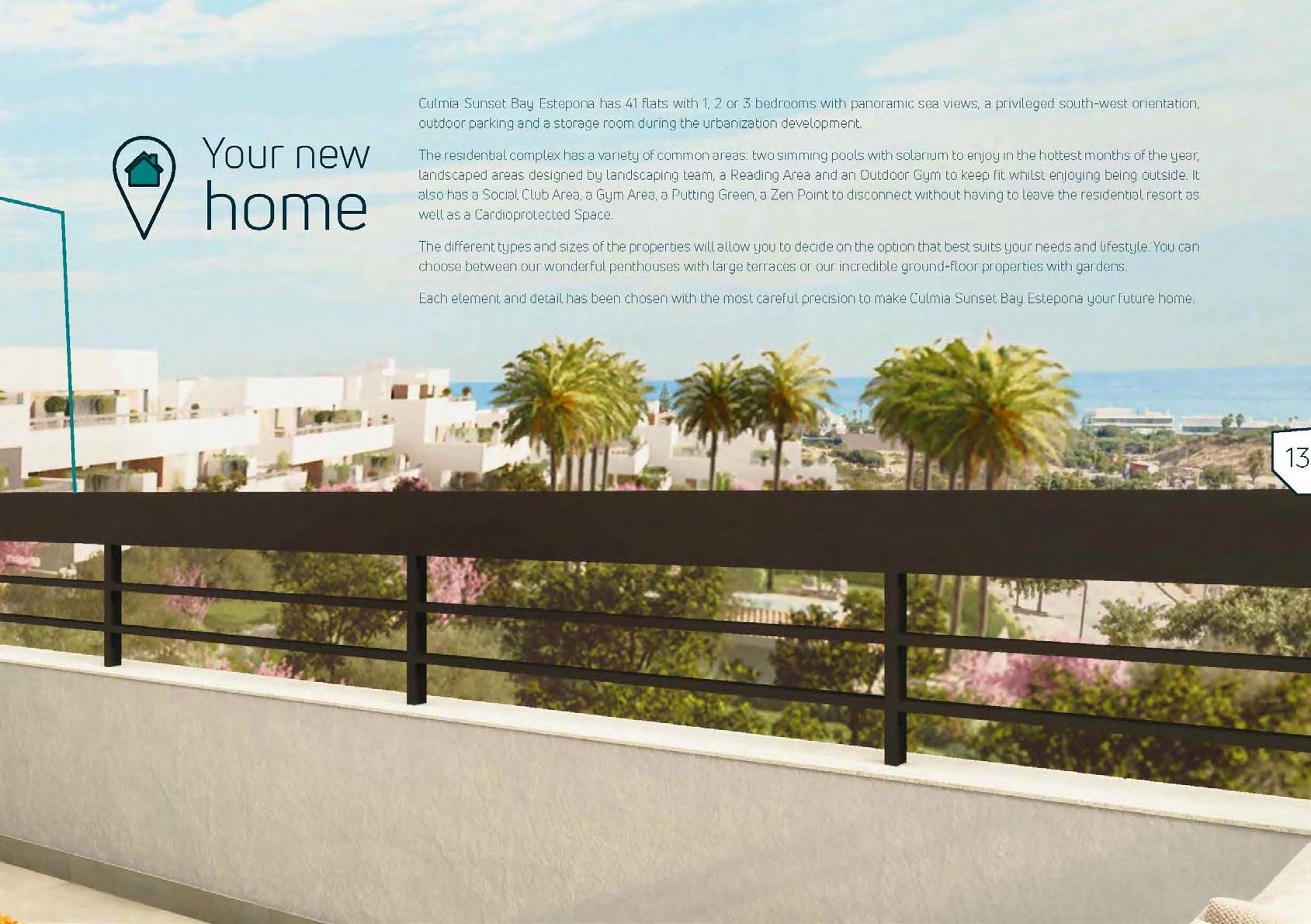 Culmia Sunset Bay Estepona oferuje także liczne udogodnienia, takie jak baseny, siłownie, spa i obszary wspólne, gdzie możesz cieszyć się słońcem i świeżym powietrzem.