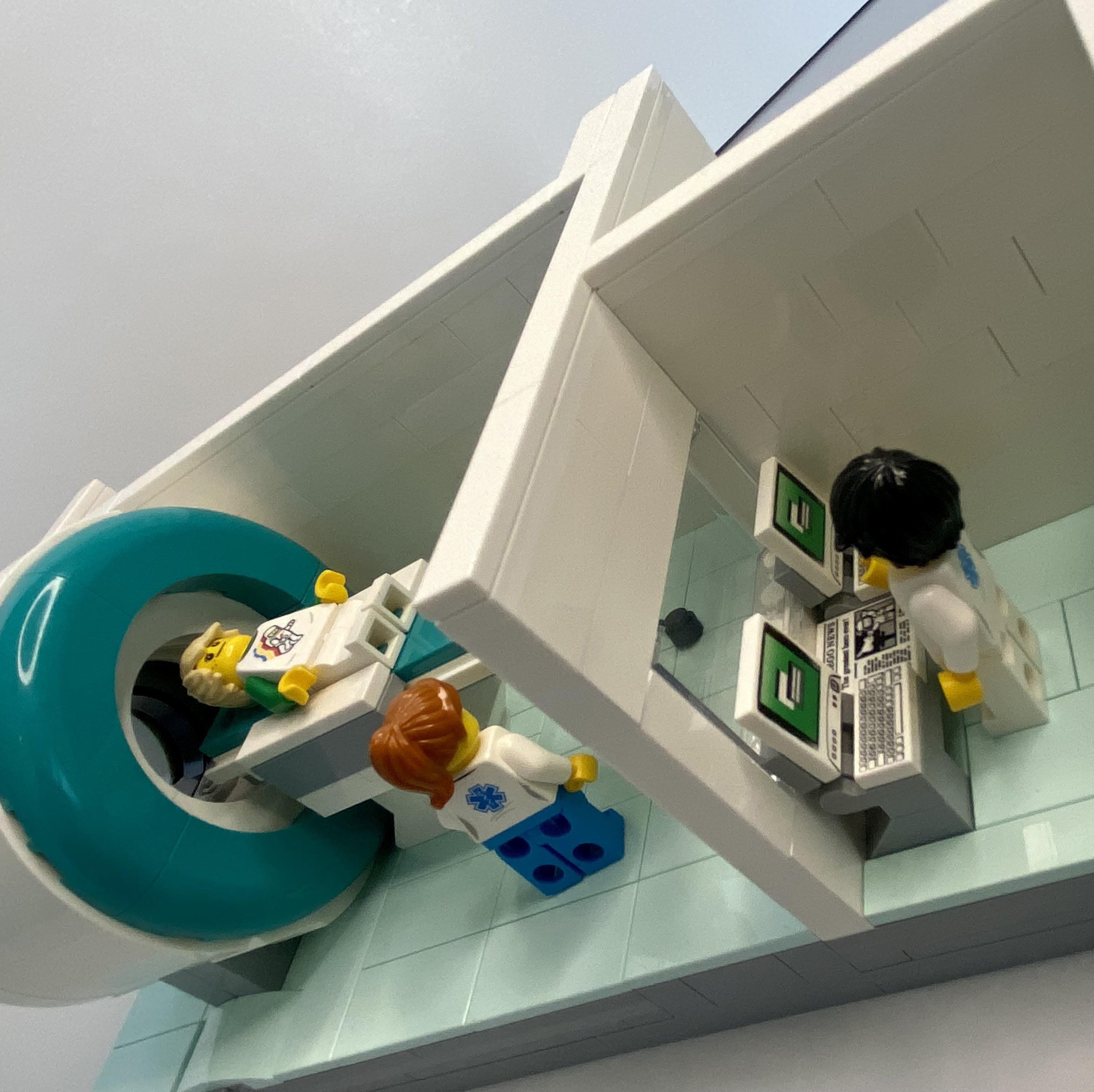 met LEGO-blokjes en poppetjes. Het geeft een heel gedetailleerd beeld van hoe het eraan toegaat in de echte scanner.