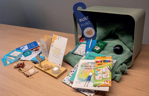 Des cartes de conversation aident à engager la discussion avec le patient ou entre les personnes présentes. Le panier contient également des livres sur le deuil pour les adultes et les enfants, ainsi que des brochures d’information sur les démarches pratiques à effectuer.