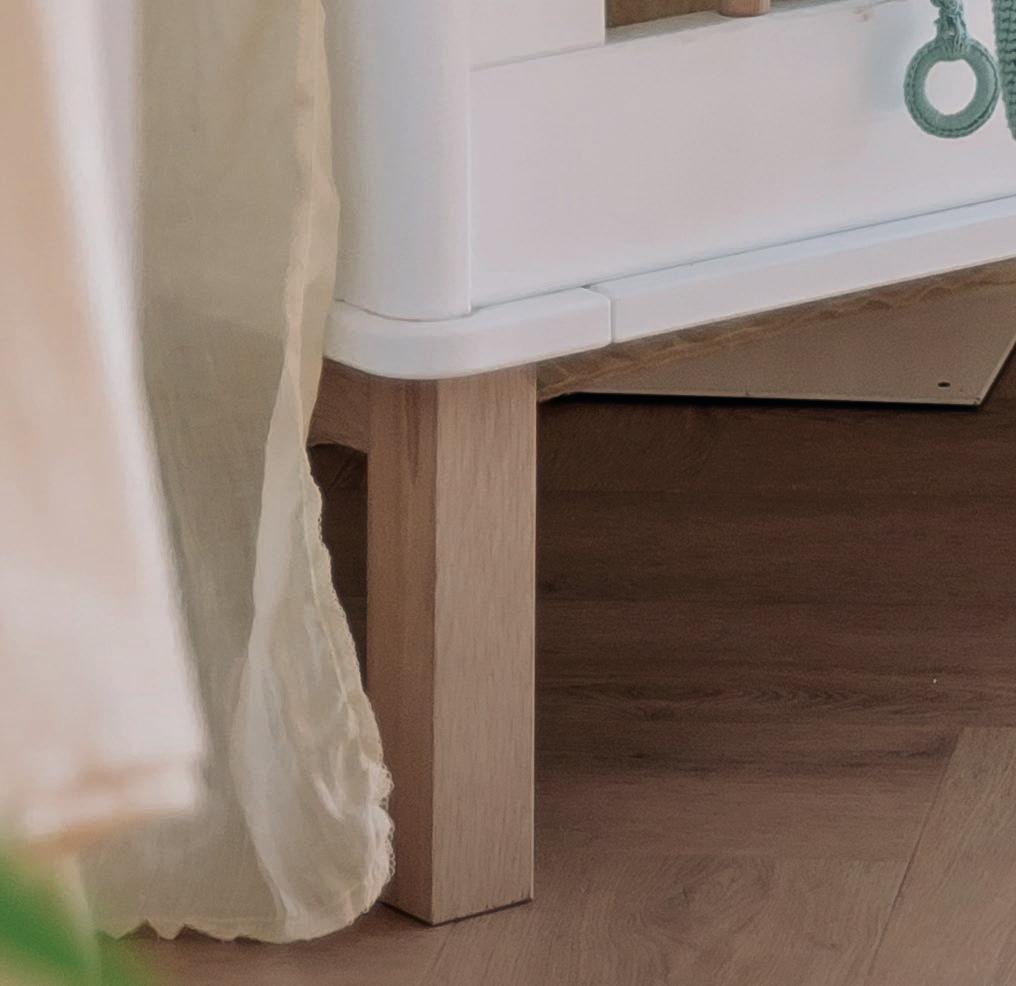 Het design is opvallend door de frisse kleurencombinatie van tijdloos wit en natuurlijk eiken met een matte, transparante finish. De hoge eiken poten, de stijlvolle rondingen en de horizontale groeven geven Mika een pure, Scandinavische uitstraling.