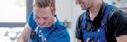 Die technische Umsetzung der Arbeitsplätze brachte besondere Herausforderungen mit sich Andreas Temme (li ) Gebietsverkaufsleiter bei Krieg erinnert sich: Der Knackpunkt war die recht komplexe Energieversorgung an den Arbeitstischen “ Unterschiedliche Steckdosentypen, Datendosen und Druckluftanschlüsse mussten integriert werden Hans-Jörg Rumm (re ), Vertriebsleiter von M&C, betont in Bezug auf Krieg: „Wir schätzen einerseits den Kataloganbi eter für unsere Werkstattausrüstung und andererseits den Hersteller mit seiner hohen Sortimentsbreite und -tiefe Man muss nicht lange suchen um qualifizierte Arbeitsplätze zu bestücken “ Bilder: Krieg