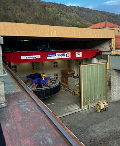 Anstatt klassischer Fahrendschalter erkennen Sicherheitsdrehgeber die Positionen der Hubwerke. Durch diese wurde zusätzlich eine positionsabhängige Überlasterkennung realisiert, wodurch ein Performance Level PLd erreicht werden konnte. Nun können Rotoren mit 220 Tonnen ohne Demontage der Pole ausgehoben werden. Das spart erheblich Zeit und senkt die Kosten bei der Inspektion und Wartung der fünf Maschinensätze. Nach dem Aushub wird der Rotor auf die gegenüberliegende Donauseite transportiert und dort für den Zeitraum der Revision zwischengelagert. Die Gesamt-